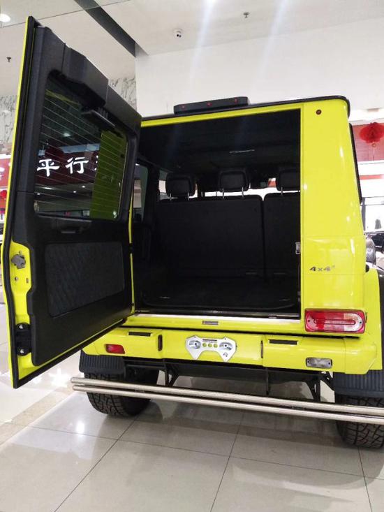 但却采用了和AMG 6x6相同的前后保险杠,看起来简单粗暴。我们花了半小时的时间来找探照灯的开关,但却大失所望,看起来这辆G500 4x4只是在设计上借用了6x6的LED探照灯,但工程师却忘记接线了。