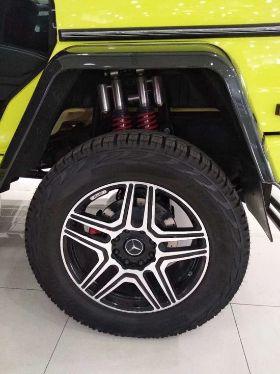 这辆车虽然只有四个车轮,但却用了8个避震和8根弹簧,这一设定不仅与普通版G级车型不同,而且与6x6车型也不相同。奔驰表示,这两根避震中有一根的阻尼是固定的,而另外一根的阻尼是可调的,从而实现运动和舒适模式的切换,而切换时间只需要15毫秒——够快。