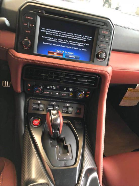 内饰部分:18款日产GTR内部这次也进行了升级,方向盘右侧的控制面板进行了重新布局,大屏上方增加了光盘插口,屏幕下方增加了出风口,保留了经典的飞机拨片,一键启动更改到档把前,方原先在档把后方,这次不得不说的是方向盘样式也升级了,布局更加合理,并增加了镀铬。