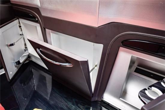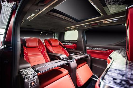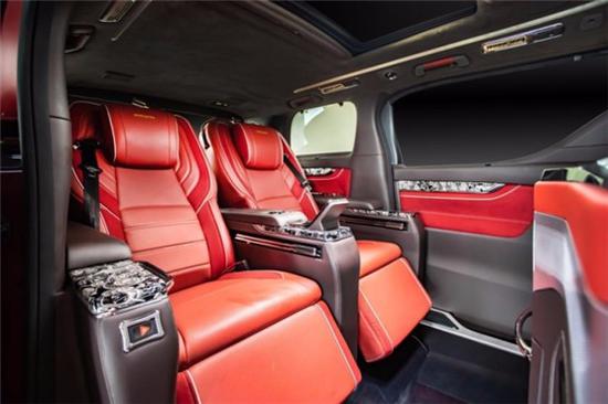 飞机头等舱首长座椅,180度展开带3级记忆功能(通风,加热,气动按摩) 紫檀木功能小吧台 伸缩航空铝制小桌板2级折叠 现代奢华感酒柜 紫檀木+环保皮侧包围面板 进口级游艇豪华电子钟表 炫彩渐变氛围灯+多功能前后双天窗 后舱三档亮度调节照明灯 全车紫檀木铝制带激光雕刻花纹地板 采用美国大能隔音底盘 后舱座椅带触摸式蛇形360度旋转阅读灯 超大储物后备箱 多功能储物格 后备箱多级挂物勾 多工能折叠后视镜 进口全车空气动力学套件