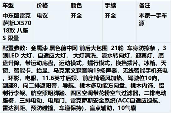 18款雷克萨斯LX570限量版新车还配备有泊车辅助、盲点监测等安全驾驶辅助系统。动力方面,其将继续搭载5.7L自然吸气V8发动机,最大输出功率 367马力,峰值扭矩530牛·米,传动部分匹配8速自动变速箱。全新18款雷克萨斯LX570雍容与狂野的交织,以高贵诠释不羁 承袭古典艺术的精髓,在硬朗身姿中注入优雅气度,卓尔不群,自成非凡气象。