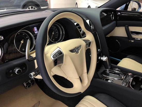 2018款宾利飞驰V8S内饰依旧延续了飞驰家族设计,优美的造型与上乘的质感完美契合,打造出了豪华端庄的内饰氛围,令人心潮澎湃。经典的三辐式方向盘没有采用平底设计,运动气息十足。换挡拨片背后的菱形滚花很有档次,同时也有着不错的触感。双盘式机械指针仪表采用了较为复古的设计,340km/h的表底刻度说明该车来头不小。