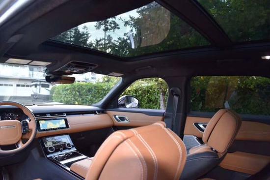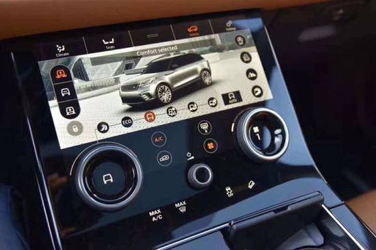 内饰的设计大部分延用了揽胜车系的设计元素,整体看上去具有很强的科技感。中控部分采用的上下两块10寸超清触控屏是最引人瞩目的亮点之一,这套双屏系统显示效果很细腻,UI的设计也很讨喜,不过实际体验过程中,屏幕很容易沾染指纹。方向盘使用的依旧是大家熟悉的四辐方向盘,仪表盘也采用了全液晶仪表盘。路虎完美地将科技与豪华融合在了一起。[