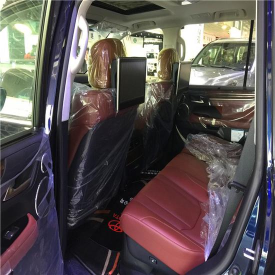 18款中东版雷克萨斯LX570金属漆、运动前中网,前后包围,拖钩,21轮、遥控启动、车身防擦条、流水式转向灯、 换挡拨片、冰箱、天窗、智能卡、前后电眼、环影、后娱、底盘升降、真皮座椅,全车电动座椅,前座椅通风加热,真皮、导航、桃木多功能方向盘、桃木内饰、铝制行李架、航空脚踏、LED 氙灯 大灯清洗、迎宾灯、四区空调、三排电动、电尾门、拖车钩、安全预碰撞系统,盲点监测,ACC自适应巡航、雷达测距、后座椅通风、车道保持、二排遮阳帘、抬显、马克莱文森音响 ,无线充电)