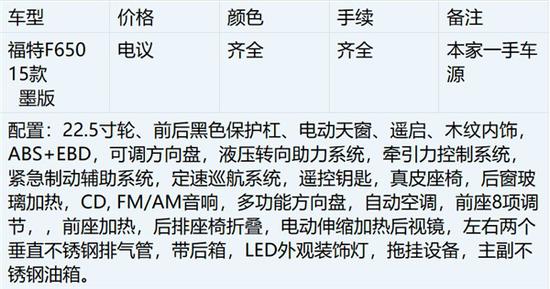 2015款墨版福特F650超大型皮卡港口现车备注: