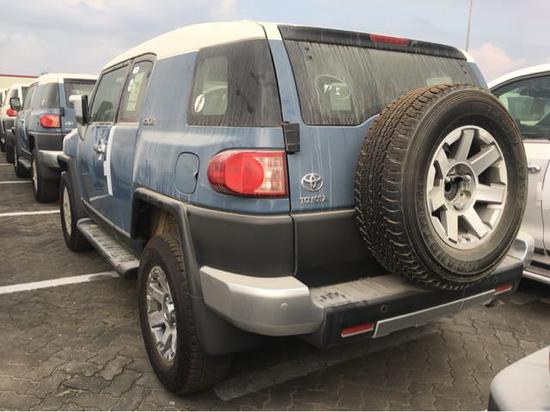 2018款酷路泽FJ GXR,汽油4.0 配置:17铝轮,159L双油箱,2气囊,手动空调,电动车窗,,地垫,动力转向,真皮方向盘,中控锁,空气压缩泵,织物座椅,仪表盘显示,导航,蓝牙,乘客扶手,8音响,制动防抱死系统(abs),胎压监测,车身稳定系统控制(vsc) ,后雷达,主动牵引系统(atrac),巡航控制,双前气囊,蠕行模式,差速锁,倒车影像,7英寸导航 ,遥控门锁 ,银色后视镜,银色门把手,银色散热格栅,电动后视镜带照明,越野旗帜,尾部雨刷,侧门脚踏。颜色:(白色/黑色/黄色/蓝色/红色/灰色)