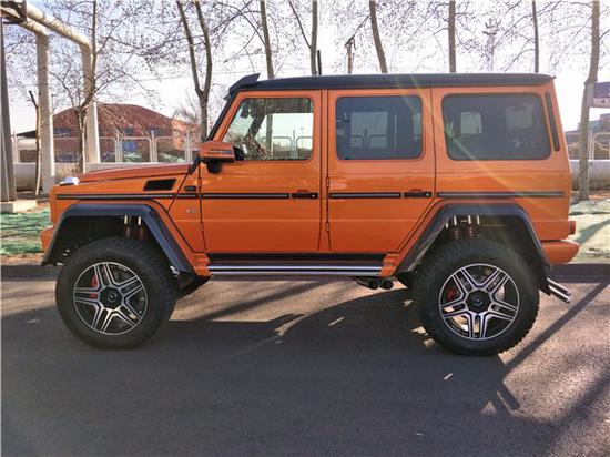 [视野方面] 驾驶起来很容易。没错,这款G5504x42比标准的G550宽了135mm,高出了282mm,但驾驶起来并不像你想象中那样吓人。双涡轮增4.0升V8 发动机能够为其提高足够动力,但动力输出是循序渐进,逐步增加的,并伴随着排气澎湃的轰鸣。循环球式的转向系统有时非常模糊,并且转向力沉重,但 G5504x42在城市周围驾驶时却不觉得很麻烦。除此之外,更高的车身给了你更佳的驾驶视野,你坐在车内可以看见车外的一切东西。
