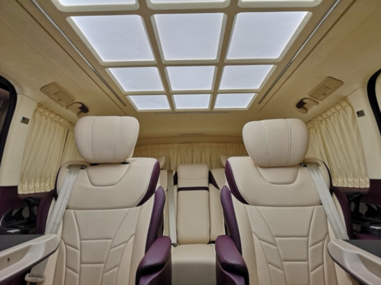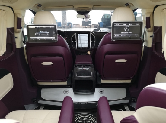 18款进口奔驰Metris 2.0T汽油,禹泽版,5门2+2+3座MPV,轮胎尺寸 225/55 R17,上掀式尾门 ,车身同色行李架,定制配置:WALD大包围,迈巴赫九宫格车顶,车顶麂皮绒包覆,全车米色紫色双拼真皮内饰,车载专用冰箱,全车铝制地板,碳纤维内饰,双侧电动滑门,第二排航空座椅(带记忆、通风、加热、按摩)可旋转,大屏高清导航倒影,第三排豪华中央扶手带触控屏,第三排豪华可平躺式沙发床,座椅后侧隐藏式桌板,头枕后侧高清触摸DVD,后排豪华隐私窗帘,后排220v插座,后排隐藏式储物盒。18727992229小石头