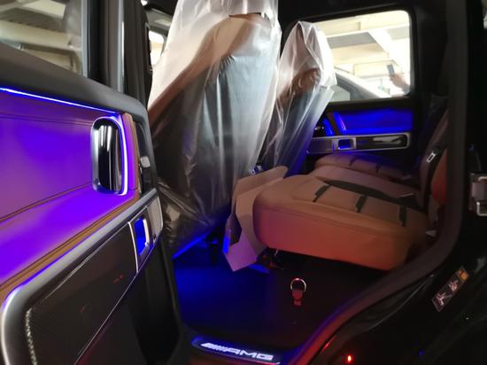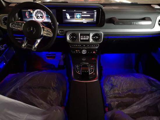 当你打开19款G63的车门的时候,就会被这里面的豪华程度以及氛围灯的效果而感到惊讶,一个天生为硬派越野而打造的车型,内饰居然可以做成这样,真的想去试一下这款车还是不是硬派越野车