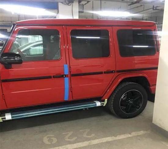 18款奔驰G500它就像一个铁箱子,没有多余的弧度、没有任何曲线,眼光所及满是平直锋利的线条,就连车顶上的导雨沟槽,也是沿着车顶周围一圈,分外焊接上去的金属槽,车门搭钮更是绝不虚心,硬挺挺地屹立在门缝之外,外凸的轮拱、造型如同倒梯形的引擎盖。