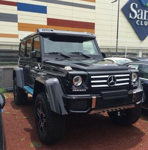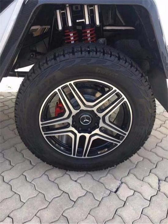 配置:V8双涡轮增压4.0升发动机,顶配,AMG的M178,悬架升高离地450mm,新一代G级越野车的发动机和底盘还采用了牵引能力达3.5吨的设计,因此还能够牵引船只、货车或宿营车,车宽2100mm,车高2250mm,该车既可以将MT胎装在18寸两片式带锁轮圈上使用,还可以在城市道路上换上325 55/R22的铝圈。碳纤维内饰,前排座椅加热通风,碳纤维轮眉,车顶碳纤维扰流板,带LED上雾灯,门式车桥传动系统,黑色车顶,AMG包围,不锈钢双车底保护,可调悬挂,22轮