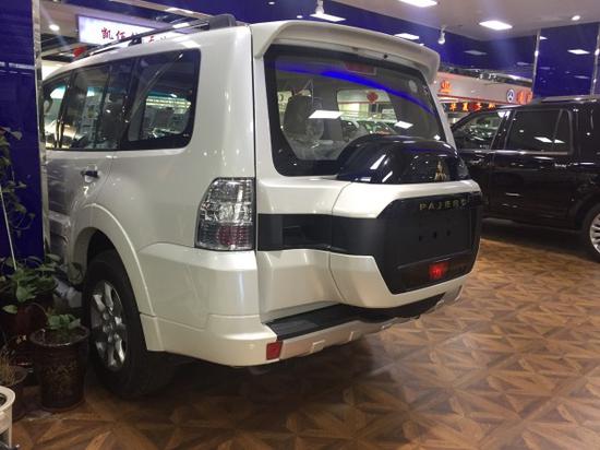 详细配置:18款帕杰罗V97 后差无窗版   配置  电镀尾喉 迎宾灯 织皮座椅 18轮 冰箱  真皮多功能方向盘 后差速锁 两气襄+侧气帘 5速自动变速箱 超选4驱系统 巡航定速 88L油箱 中控锁 自动空调 胎压监测 车辆动态定控制系统 镀铬电动后视镜 放电式头灯 大灯清洗装置 雾灯脚踏 后尾翼 行李架