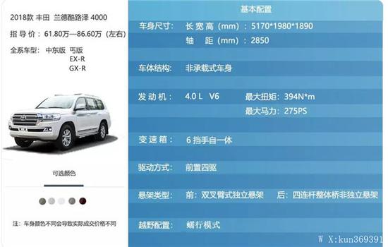 2018款兰德酷路泽 4000基本配置: