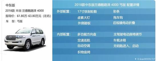 2018款兰德酷路泽4000 丐版: