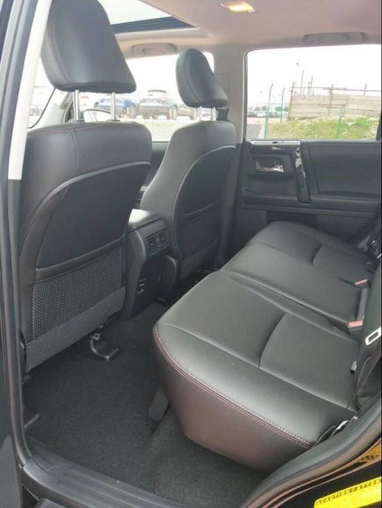 从侧来看,4Runner整个车身造型看起来较为方正,而方正的轮框设计看起来也更加硬派,宽大的D柱更是增加了几分硬汉的味道,不过还是那句话,这个汉子 相比普拉多真的要细腻许多,车身尺寸方面,这辆车的长宽高分别为4823*1925*1885mm,轴距2790mm,外观尺寸长度和普拉多基本一样,车 子比普拉多矮一点,宽一点。车重2180公斤,可能少两个座位,略轻50公斤。是标准五座的,七座选装,但后备箱比较高,选装第三排肯定很狭小,五座车后 备箱有大型的储物暗格。车身线条平整,四四方方的感觉让流线车身泛滥的马路上增添一道别样的风景。