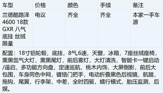 18款中东版兰德酷路泽4600 在保持简洁大方的同时更显流畅,酷路泽4600的蹭条以及尾部组合灯设计均有优化更新。新的酷路泽4600外观则针对目前流行的设计进行了诠释,实用酷路泽4600的同时,提高了酷路泽4600车辆的档次和霸气。丰田兰德酷路泽4600的高贵是一种气质,无法模仿,独树一帜的豪华配置,以及全面提升的稳定性和无与伦比的动力性,必令那些追随者自叹弗如。