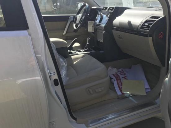 18款丰田中东版霸道4000 VX 外挂真皮 KDSS版 4.0L汽油,7座,18铝轮,9气,LED氙灯,前雾灯,日行灯,大灯清洗,KDSS,EPS,巡航,下坡辅助,天窗,镀铬中网,炫彩仪表盘,雨量感应器,电折耳,冰箱,一键启动,自动空调,多功能皮质方向盘,皮质座椅带座椅通风,电动调节座椅,前后电眼,后摄像头,9喇叭,AM/FM/CD/DVD,前杠,外挂