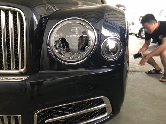 18款宾利慕尚加长版大灯仍然采用经典的双圆设计,但光源改为了全LED,为了保持车身的完整性,大灯清洗装置隐藏在中间。外观增加了许多碳纤维套件,并且动力系统也有了相应的升级,雾灯区、前唇、侧裙、后扰流板等部位增加了碳纤维套件,配合深色的车漆,是整车不经意间流露出一丝霸气。