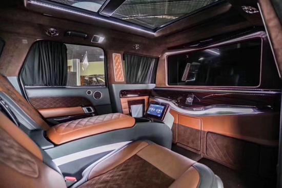 皇家一号的车内配有简洁但做工却非常考究的吧台,让您置身车内尽可享受舒适奢华的贵宾式待遇。路虎揽胜皇家一号车内还配有多媒体DVD音效系统。选材是其优势所在,呈现的内饰风格优雅精致,而选配的后排双座行政座椅则带来更为至臻的乘坐享受。本公司18款路虎皇家一号 现车销售,车型颜色多选,款型配置丰富