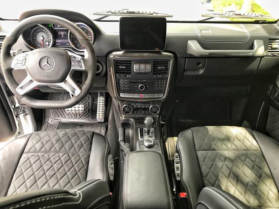 内饰设计:进到车里,驾驶舱的整体设计,跟G63基本一模一样,主要差别是用料材质。G500 4X4大量应用了碳纤维装饰,比G63的黑色钢琴漆装饰高档不少。座椅方面,两者都是Designo菱格座椅,但是G500 4X4的中间部分,采用了Dinamica微纤维材质,手感类似于翻毛皮。同样的材质,也被应用到了门板上面。