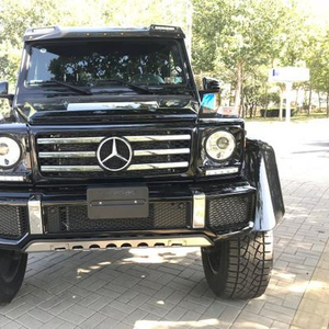 外观设计:总有那么一款车是让人欲罢不能的,面对眼前这辆奔驰G500 4x4的诱惑,相信没有谁能够拒绝吧。即便你是一个对SUV车型甚至对车都没有什么兴趣的人,你也不得不承认这辆车已经让你有“剁手”的冲动了,不过先别着急,因为这货真不是一般人消费的起的,一般土豪都不行。并且产量也是相当“可怜”,有钱也未必能买到。对于奔驰G级车型都有些“脸盲”的朋友可能也很难指出它与普通版G级车型的区别,但你们肯定知道三轴的G63 6x6皮卡,而眼前这辆G500 4x4就可以看做是放弃了第三根车轴的6x6,这下你们能想象出这辆车的真正实力了吗?今天我们将会从这款车的一些特别之处进行针对性的介绍,了解这款车的精髓。