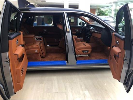 劳斯莱斯幻影加长版 第八代 轿车 标准配置 :可升降底 可升降底盘 后备箱盖电动关闭功 能 四门及行李厢盖液压吸合柔性闭功 能 定速巡航控制系统 ,真皮电动调节多功能方向 盘 600 瓦10 声道功放及 16 个扬声 器 中控台配10.2寸中央控制显示屏 ,电动升降的欢庆女神 ,前车门内置特氟纶涂层雨 ,前后四区独立恒温空调控制系统车载蓝牙系统 ,GPS卫星导航系统 ,中控台面板及四车门边木饰 。选装配置 :双色车身 双色内饰氛围 劳斯 莱RR 头枕刺绣 海军蓝色长单腰线 后排中央固定 2座 航空座 航空椅 真皮星光顶 21寸部分抛光铝合金轮毂 后排黑色窗帘。