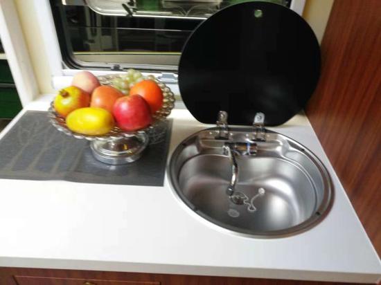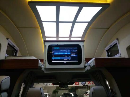 通透的车厢采用了经典的前中后的布局,符合国人的生活习惯,前部为卡座沙发可变儿童床、储物柜,上方为电动升降床,中部为厨房+卫生间,尾部为环形沙发和多功能桌,也可变换成双人床。The transparent carriage adopts the classical layout of front, middle and back, which conforms to the people‘s living habits。 The front part is a variable bed with a seat sofa and a locker, the upper part is an electric lift bed, the middle part is a kitchen + toilet, the rear part is a circular sofa and a multi-functional table, and it can also be transformed into a double bed。