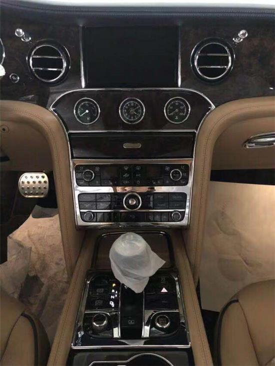 宾利慕尚加长版后排座椅比前排的还要柔软,包裹性强,也首次加入了电动腿托,后排的显示屏可以隐藏在前排椅背内,也可以取下来使用,非常方便,在中央扶手箱内新添加了两块小桌板,面积足够大,防滑性能也很好。