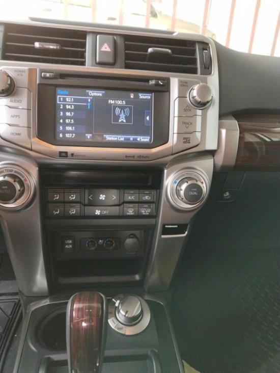 18款加版丰田超霸白棕LTD 7座 标配:4.0升Ⅴ6发动机,双ⅤVT-i,5速自动,多功能真皮方向盘,6.1英寸中控显示屏,导航,10气囊,加热前座椅,主驾8向带腰托,副驾4向座位,后排隐私玻璃,后视摄像头,自动防眩后视镜,定速巡航,胎压监测,行李架,卤素大灯,前后轮碟刹。选配:7座,20轮,JBL音响15个扬声器带低音炮,自动空调,智能卡,一键式启动,前后电眼,全时四驱,全车镀烙套件,自动大灯,车门边灯,座椅通风加热记忆,X-REAS 运动悬挂,全尺寸备胎,木内饰,AVN高级导航