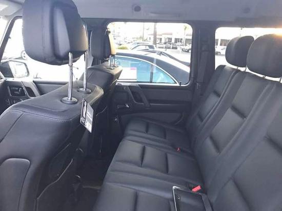 内饰方面:2018款奔驰G550座椅采用designo座椅,黑色色真皮包裹更上档次,将卓越的品质和精致的工艺在车内体现得淋漓尽致,宽敞开阔的车内空间就已经令人倍感自由奔放,特有的居高临下的座椅位置确保您时刻保持极佳的全方位视野。 2018款奔驰G550座椅有丰富的调节功能,除了常规的位置和座椅角度调节之外,椅垫、椅背和腰部都能进行单独调节,提供不同程度的身体包裹性。后排并且为乘客提供了独立的空调出风口和座椅电加热功能。中控全部采用的真皮包裹,四幅多功能方向盘手感无可挑剔,操控方便,在越野界立命的三把差速锁,使用要按1-2-3的顺序启动,不可乱来。