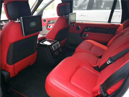 18款路虎揽胜行政柴油创世加长白/红。座椅22项调节,前后加热和通风,前排带按摩功能 (300LY);乌木鹿皮顶;钢琴黑装饰;21英寸,7双幅轮毂,银色(风格7001);像素LED大灯,带大灯清洗;滑动式全景天窗带电动遮阳帘;隐私玻璃+隔热挡风玻璃;侧进气口;抬头显示;多功能木质/皮革加热方向盘;急救包;前后雾灯;825W音响;全地形控制;2代地形;环境氛围灯;环影;无钥匙进入;电吸门;电尾门;自动调光后视镜;应急备胎;侧窗电动遮阳帘;12.3寸TFT仪器显示;Wi-Fi热点;高级脚垫;4区空调;10寸后娱;DVD播放机。