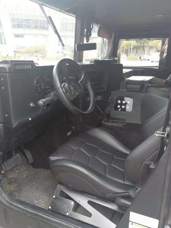 相对于军用的HMMWV,Humvee C最大的改动就是内饰:为了增加舒适性和包裹性,前后座椅都改成了专门订制的赛车座椅;为了改善握感和操控性,方向盘改为欧洲进口的momo赛车方向盘;为了增加视觉和触觉上的豪华感,车内也采用了大量的皮革和实木材质来覆盖。不过刨去这些改动,我们还是能从车内的整体结构中看出原先军车的样子,特别是中控台更是让人想到了坦克、军舰内部的景象。