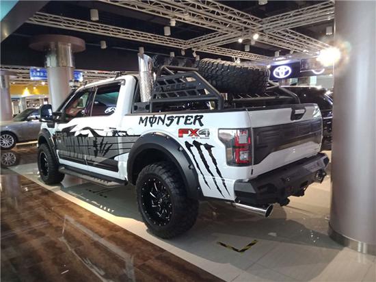 全新福特猛禽F150方方正正的前大灯与前保险杠造就了完美的车头造型与比例,进气格栅采用蜂窝状网格设计,并配以雕刻式的福特品牌标识。其前保险杠相当硬朗,且保险杠下方配备金属护板,以应对极端路况环境。整体的车架由高强度钢冲压而成,这样不但提高了车身的耐用性,更对乘客在安全方面有了进一步的保证。