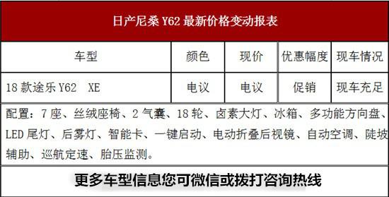 最新款尼桑途乐Y62 4.0L 最新资讯早知道:途乐Y62这款车现在18款和19款正在热销,价格上来说近期价格比较平稳,现阶段途乐价格一直维持在低点,喜欢这款车朋友可以入手了。对于途乐这款车型个人认为这款车型是性价比非常高的一款越野车,观点主要源于以下原因:他的发动机和酷路泽、霸道是一款发动机,变速箱上来说途乐是7速,而酷路泽和霸道现阶段一直在用6速的变速箱。 更多车型信息您可微信或拨打咨询热线(在结尾处↓↓)