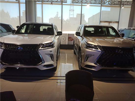 18款中东雷克萨斯 限量款配置:金属漆、黑色前中网、前后大包围、射灯、21轮、遥控启动、车身防擦条、流水式转向灯、外置拖钩、带运动底盘、运动模式、换挡拨片、冰箱、天窗、智能卡、电眼、环影、后娱、底盘升降、前座椅通风加热(真皮)、导航、桃木多功能方向盘、桃木内饰、铝制行李架、航空照明脚踏、LED 氙灯 大灯清洗、迎宾灯、四区空调、三排电动、电尾门、拖车钩、ACC自适应巡航、雷达测距、后座椅通风、车道保持、二排遮阳帘、抬显、马克莱文森音响。