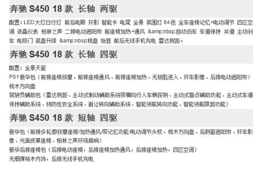 新款S级配备行政轿车智能驾驶辅助系统,让车辆具有自主思考力,令引领脚步愈加从容;开创首席乘坐空间,配备后排独立娱乐系统,令远大征程倍添愉悦。梅赛德斯-奔驰S级轿车,与先行同行,领时代之先。新款几何多束LED灯,当迎面来车或前方有车辆时,远光灯模块的 LED 灯会部分关闭,各形成一个 U 型暗光模式。远光灯会持续照亮车道的其他区域(部分远光灯)。当系统识别到正在高速公路行驶时,会相应地选择最佳远光灯模式。高速公路远光灯可降低对迎面驶来的载重车造成眩目的风险,同时使驾驶员的注意力集中在自己行驶的车道上。高速公路部分远光灯功能将根据交通状况启用。