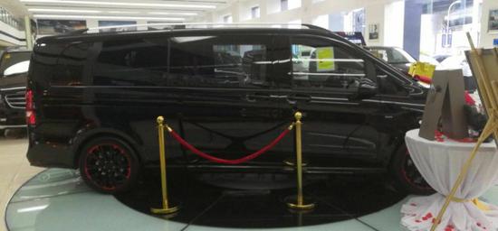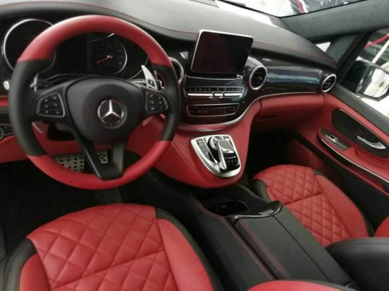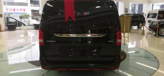 外观上在进口奔驰V级的基础上,整车采用红唇运动大包围套件,尾部镶嵌巴博斯运动型4出镀络排气管,采用逆回流声浪排气技术,其特点:7.4原生的管位排气管、尾嘴梅花型的激光焊接技术、鼓内声浪滤网独有技术、高温热敷漆防护技术;轮毂为巴博斯订制19寸轮毂和马牌防爆胎(设计前卫、轮胎宽抓地力好、降低油耗、降低胎噪),巴博斯运动尾翼(给车尾部提供更大的下压力,车不易发漂)。