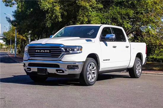2019款道奇公羊大角牛不仅外观上刚劲有力表现出皮卡车所具备的硬朗风范,而且内部配备的豪华性在同级别车中同样可圈可点。道奇公羊长角号的眼神中没有透露出一丝的活泼神韵,唯一展现出来的只有凶狠。2017款道奇公羊长角号进气口位于右侧大灯的位置,高度在一米左右,高于绝大多数轿车和 SUV,另外20英寸的大脚也算是运动气质的一种表现。硕大的中网造型同样很震撼,“高鼻梁”的设计风格也是车头部位凶猛的精髓之处。车头使用了小幅前倾的俯冲式设计思路,意在突显霸气和威猛。