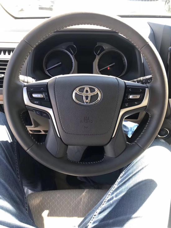 18款丰田霸道4000VX中控台有意设计成分体的样式,阶梯布局将多媒体与空调控制区和谐地分割,不仅一目了然而且便于车主熟悉掌握。四幅方向盘和中控面板的银色双竖条相呼应,还在沉稳中体现出一丝科技感。