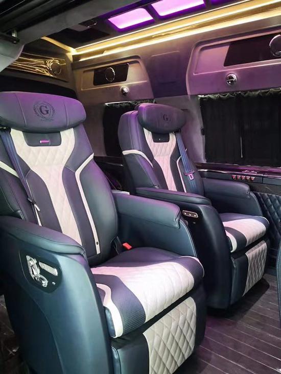 独立四座豪华航空椅操作便捷,乘坐空间充裕,少了一些小型商务车的局促感,多了一些舒适感。