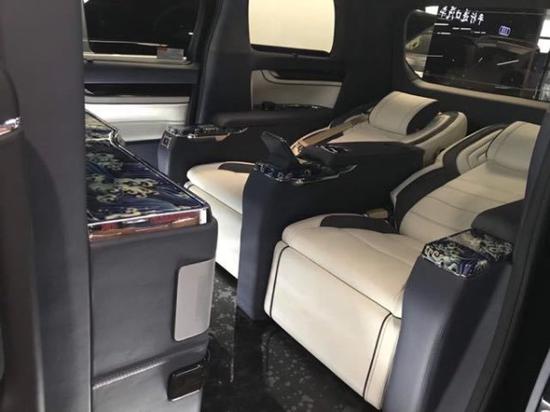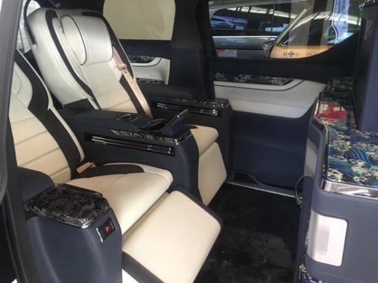 埃尔法和风系列——逐浪:由工艺大师改良日本传 统的末金工艺,将贵金属粉末和涂料混合,进行手工描绘,一键式电动升降雾化隔屏。电 控: 多功能方向盘+GPS全球卫星导航系统+ 倒车影像,电动中滑门,车载触控屏中控系统(人机交换系统)。外 观:日本TRD立体大包围(双排大灯设计)电 器:220 v电源接口、USB多功能连接口,一键式超静音高清液晶升降电视,全车LED氛围灯,原装进口内置集成调光阅读灯,智能隐藏储物柜,智能隐藏式现代化奢华酒柜。座 椅: 原装进口一键式电动蒙娜丽莎首长席座椅(加热、通风、气动按摩)选 材: 顶棚采用意大利阿尔坎塔拉Alcantara麂皮绒, 进口黄金榆树榴拼接航空铝制地板, 豪华手动伸缩隐藏航空铝镁合金小桌板, 四季实用透明环保地膜。