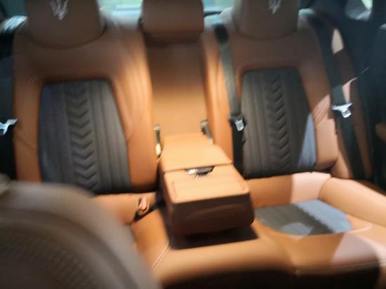座椅的质感并没有让人失望,坐垫柔软宽大,包裹式座椅保证了激烈驾驶时位置稳定,头枕处还有玛莎拉蒂三叉戟logo。