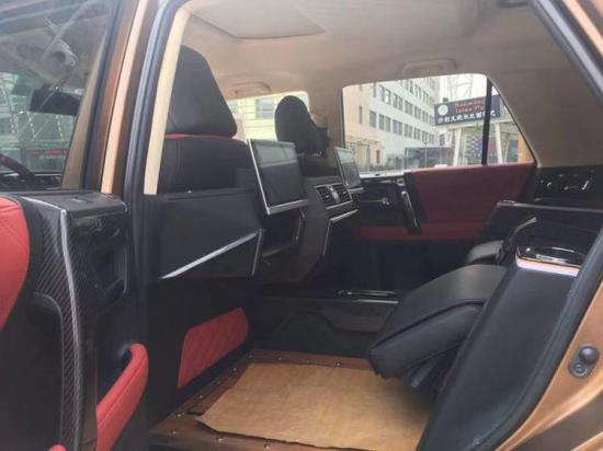 乔治巴顿越野车内饰凸显豪华,乔治巴顿越野车的车内分为前排和后排两个单独的座舱,前后排座舱内都搭配了酒红色内饰,显得足够豪华。
