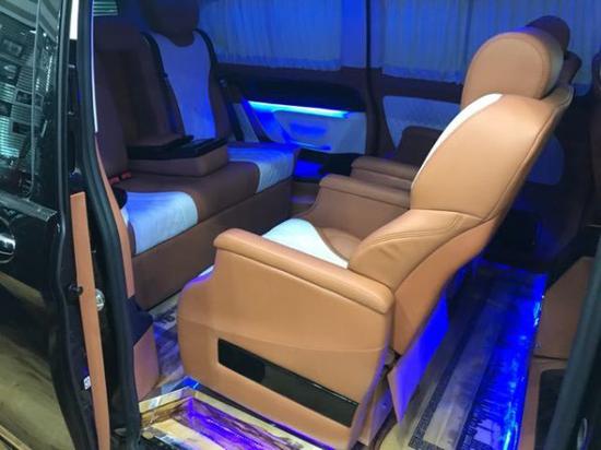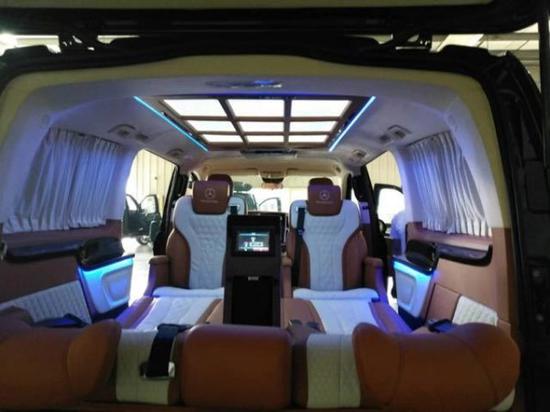 奔驰Metris 18款 2.0T汽油 美规 黑/黑黄鹤棕双拼 6原厂选配:7座、多功能方向盘 、金属漆、20副17铝轮、电动加热折叠后视镜、雾灯、巡航定速、后掀式尾门、两侧电动门、增强大功率空调 全车原厂漆 照明化妆镜 多功能方向盘、 豪华改装: 全车隔音止震、中央软包冰箱+220V电源、前舱座椅门板整体软包、12.1寸前舱大屏导航、座椅靠背桌板、主副驾驶电动座椅+腰部支撑 、二排豪华航空座椅 (通风 按摩 加热 旋转)、后舱电动三人沙发躺椅、南美柚木地板、迎宾踏板、九宫格顶棚、满天星、中仓两侧板软包、后尾门软包、后舱两侧软包、二三排手动窗帘、后窗帘、米白色鹿皮顶棚、带奔驰LOGO18.5寸高清电动吸顶DVD、高光暗影桃木、LED氛围灯、桃木方向盘、夜视款360°环影带行车记录仪、LED带转向流水灯的鹰眼大灯总成、外观镀铬套件