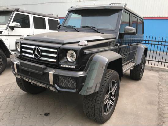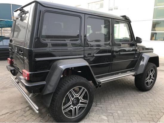 奔驰G500 4x4前保险杠采用与G级AMG车型采用了相同的设计,保险杠下部增加了镀铬下护板,车顶增加了可拆卸的碳纤维扰流板,并在扰流板两侧融入了LED灯光系统。此外,由于新车轮距进行了加宽,因此与普通版G 500相比,奔驰G5004x4概念车的四轮轮眉宽度有了明显的增加,黑色的碳纤维轮眉也赋予了整车更为强悍的野性。