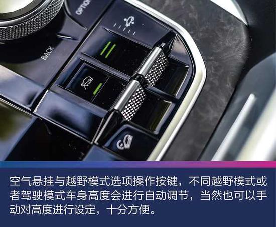 如果是我个人选择的话,我也一定会选择X Line选装包。双车桥空气悬挂系统带有自动水平高度调节,四根悬挂可单独控制,并可根据车辆状态及模式自动调节车身高度,无论对公路操控还是越野都有一定的帮助作用,当单侧轮胎负压出现问题时,它还也可以对车身两边的高度进行调节,智能化程度非常高。