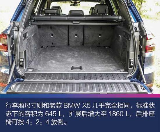 在本文的最后,我们才来聊一聊全新一代BMW X5的尺寸,为什么?尽管车型轴距相比于现款长42mm达到2975mm,长宽高分别增加36mm(达到4922mm)、66mm(达到2004mm)和19mm(达到1745mm),但其实经我们实际测量内部空间变化不大,只有宽度增幅明显,所以我们在这里对此一笔带过就好。不过说真的,BMW X5的尺寸已经很大了,如果还有更苛刻的要求,不妨等一等BMW X7,它将提供6座和7座两个版本。