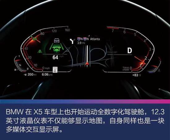 有关于未来科技的另一个环节在于完全数字化的驾驶舱,BMW称其为显示和控制概念,由12.3英寸组合高清液晶仪表和带有7.0最新版本iDrive人机交互系统的12.3英寸中控屏幕组成。