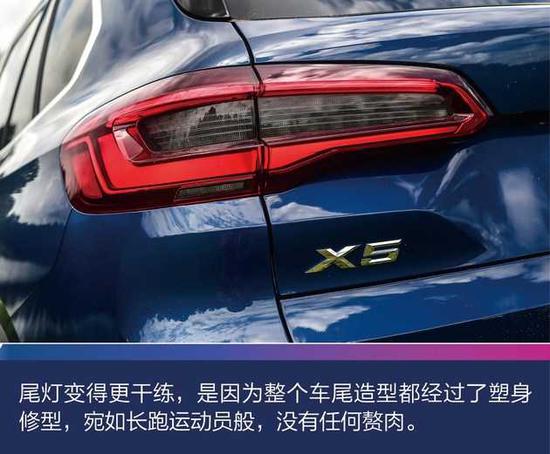 更大尺寸的双肾型进气格栅设计让BMW X5更具进攻性,并且格栅有连接起来的趋势,这很有可能是未来BMW X车型的趋势。而到了侧面和尾部,X5明显有一种被塑形过的感觉,它的两条腰线棱角分明,顺着这里往车后方看,修身过的尾灯现在也变得干净利落,犹如长跑运动员的身材,没有任何赘肉。
