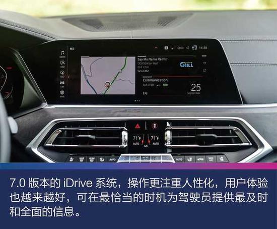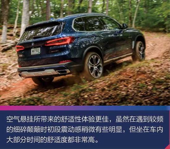 当然最重要的是,空气悬挂所带来的舒适性体验更佳,BMW现有车型除了X5之外应该只有旗舰车型7系配备了这样的装置,虽然在遇到较频的细碎颠簸时初段震动感稍微有些明显,但坐在车内大部分时间的舒适度都非常高,这是一辆豪华中大型SUV所必须具备的素质。